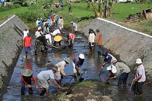 Kegiatan gotong royong membersihkan lingkungan sekitar.