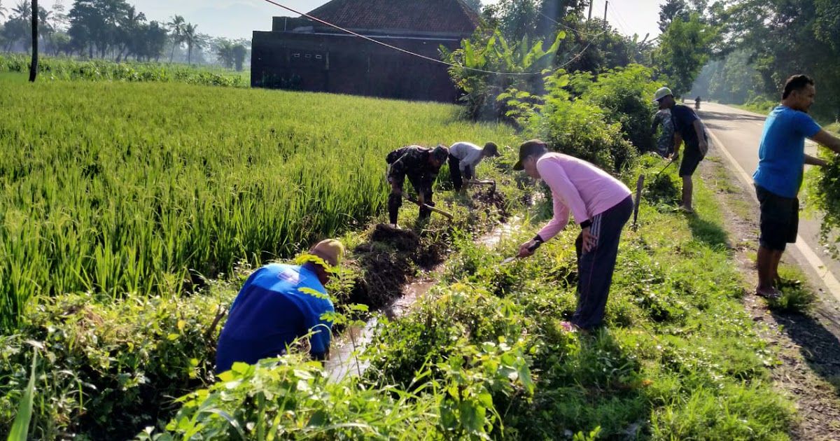 Kegiatan gotong royong membersihkan lingkungan sekitar.